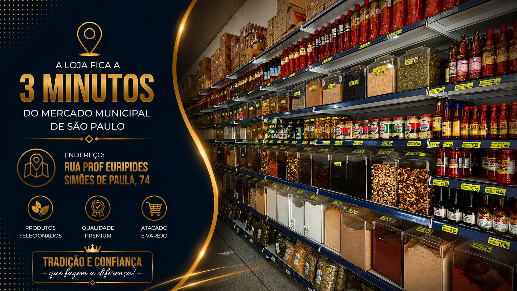 Veja de perto nossa loja, organização e variedade de produtos. Estamos prontos para atender no atacado com qualidade, agilidade e confiança, a poucos minutos do Mercado Municipal de São Paulo.